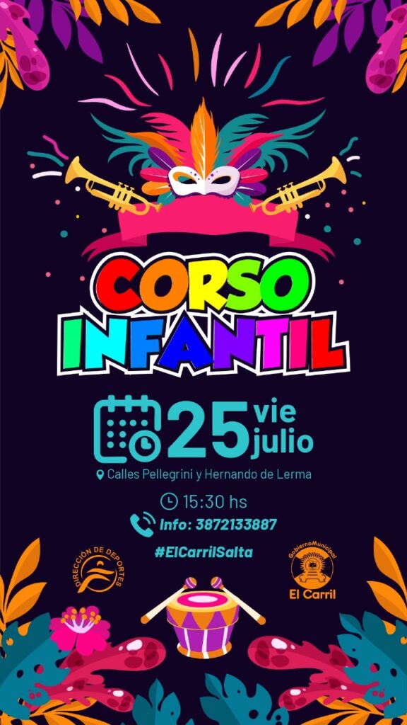 La Dirección de Deportes de la Municipalidad de El Carril anunció la realización del esperado Corso Infantil, que tendrá lugar este viernes 25 de julio a partir de las 15:30 horas, en la intersección de las calles Hernando de Lerma y Pellegrini.